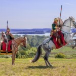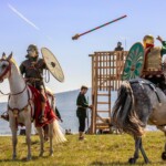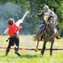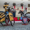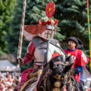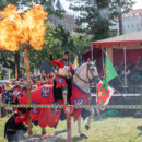A lovagi tornán izgalmas összecsapásokat fognak látni, amikor a lovasok nemcsak a hajdani lovagok készségeit mutatják be a klasszikus gyűrűs ügyességi viadalon, hanem sok-sok szokatlan látványosságot is – robbanások, tűz, pirotechnika. Nem hiányozhat a látványos kopjatörés is, ahol a lovagok kopjákkal ütik ki egymást a nyeregből. Az egész előadást királyi Herold kíséri.